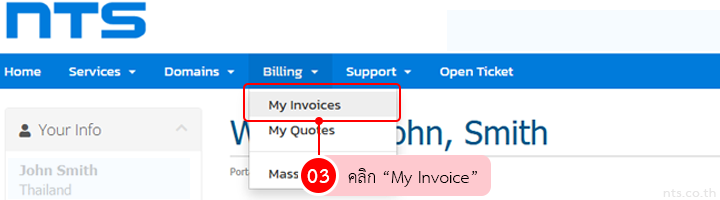 3. ที่เมนู Billing คลิกที่ My Invoices