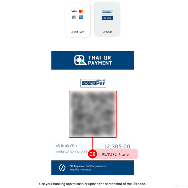 8. ระบบจะแสดง QR Code ขึ้นมา เปิดแอปธนาคารของคุณเพื่อทำการสแกน QR Code เพื่อชำระเงิน