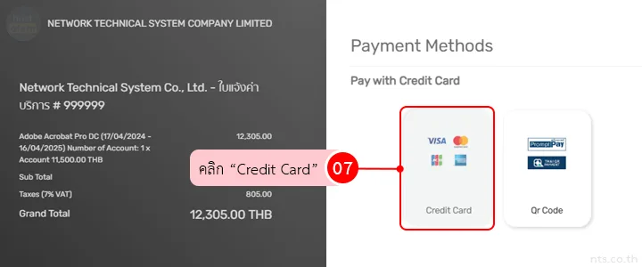 สำหรับลูกค้าที่ต้องการชำระเงินผ่าน Credit Card สามารถทำตามขั้นตอนดังนี้: