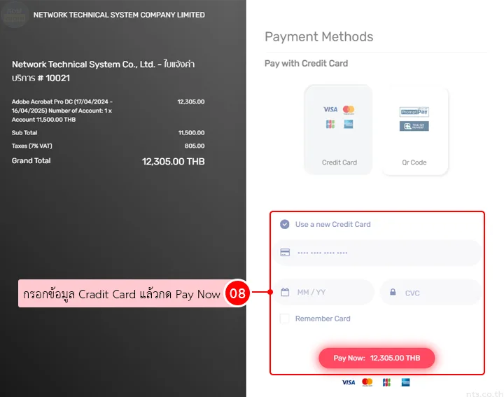 8. กรอกข้อมูล Credit Card แล้วกด Pay Now