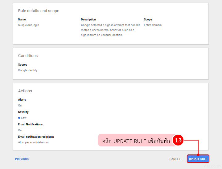 ตรวจสอบความถูกต้อง แล้วคลิก Update Rule เพื่อบันทึก