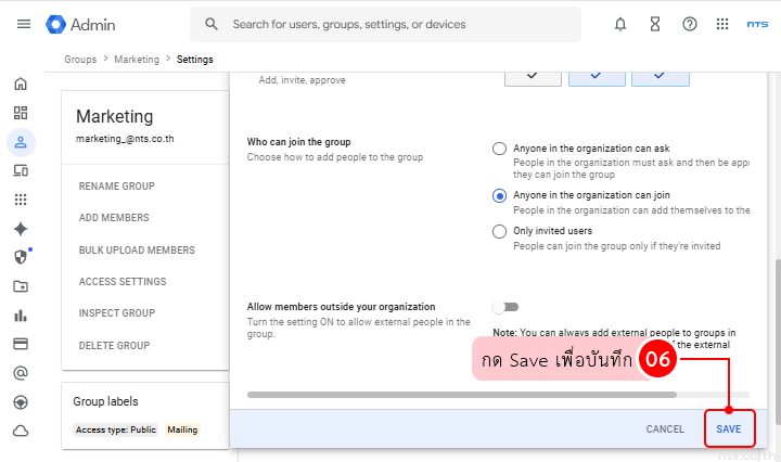 คู่มือ Google Workspace วิธีเปิดสิทธิ์ให้ Google Group รับอีเมลจากบัญชีอื่น