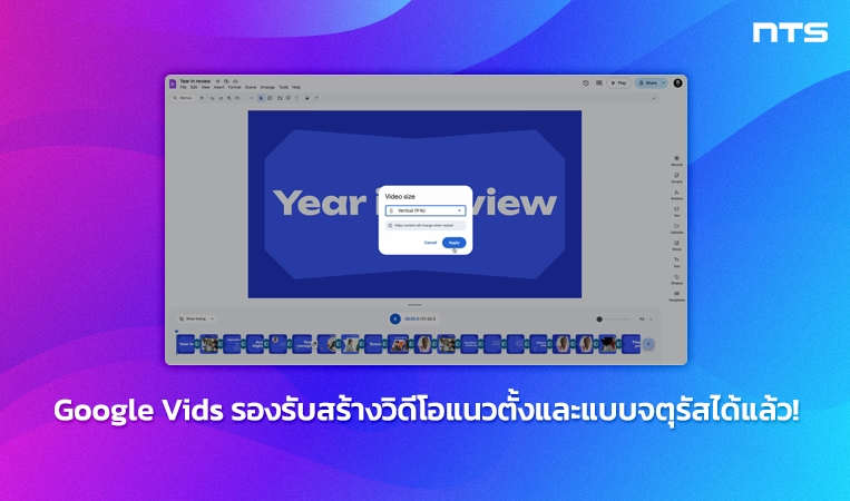 สายคอนเทนต์เตรียมตัวให้พร้อม! ตอนนี้ Google Vids เพิ่มตัวเลือกให้สร้างวิดีโอในสัดส่วนแนวตั้ง (9:16) และแบบจตุรัส (1:1) ได้แล้ว จากเดิมที่มีแค่แนวกว้าง (16:9) ช่วยให้เราปล่อยวิดีโอลงแพลตฟอร์มยอดฮิตอย่าง YouTube Shorts, Instagram Reels, TikTok ได้อย่างตรงใจ