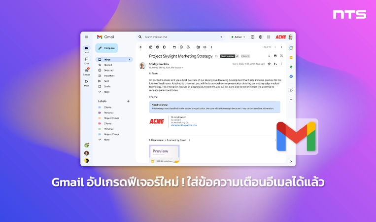 หากต้องการใช้ Gmail ให้ปลอดภัยและคุมข้อมูลได้มากขึ้น NTS พร้อมดูแล Google Workspace ให้องค์กรของคุณ พร้อมใช้งานได้อย่างมั่นใจ
