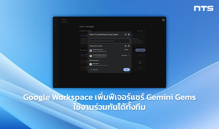 Google Workspace เพิ่มฟีเจอร์แชร์ Gemini Gems ใช้งานร่วมกันได้ทั้งทีม